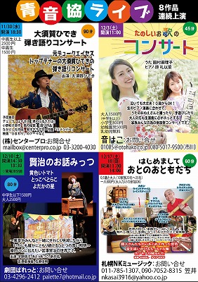 杉並区にある文化発信拠点オトオアシスで開催される8つのライブ 青音協ライブ8作品を上演します